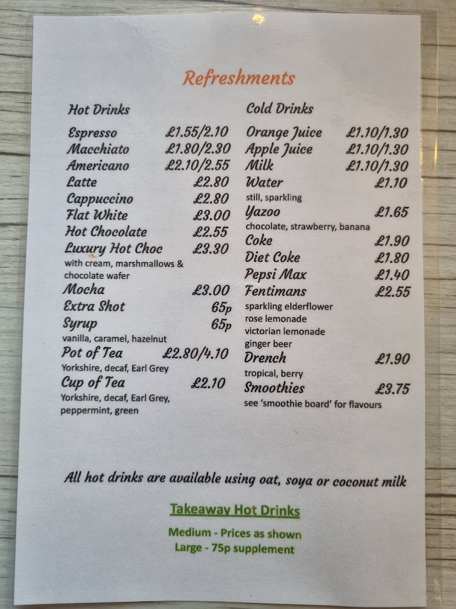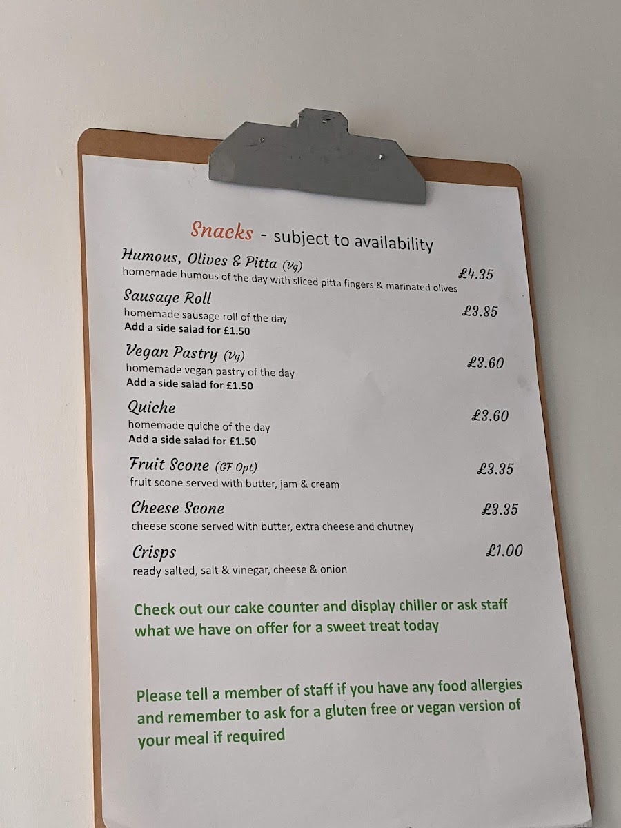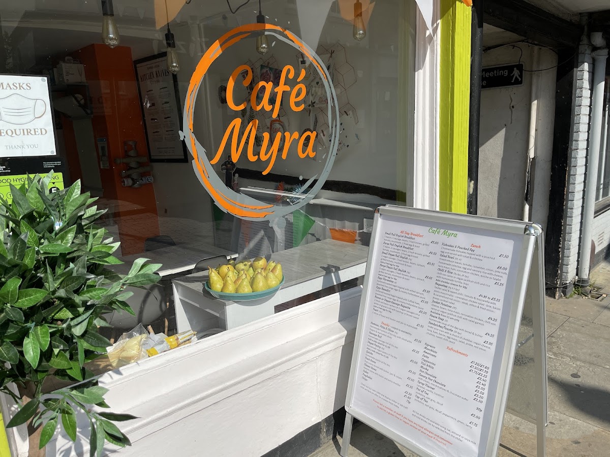 The menu at Cafe Myra / Cheese and Wine at Myra offers a delightful mix of options catering to various tastes and dietary preferences. For those looking for a hearty start, the Small Full English Breakfast (£6.50) and Large Full English Breakfast (£8.50) are popular choices, with gluten-free options available. Vegans can enjoy the Small Vegan Full English (£6.50) or the Large Vegan Full English (£8.50), both packed with flavor. For a lighter option, the Mushroom Hollandaise (£7.50) offers a rich, creamy twist on a classic. Lunchtime brings a variety of fresh, satisfying meals such as the Beef Taco Salad (£8.50, with a vegan option) and the comforting Spaghetti Bolognese (£9), which can also be made vegan. The Chilli & Rice (£8) is another hearty option with both vegan and gluten-free variations. For a healthier choice, the Salad Bowl (£7) and Jacket Potatoes (£5.50) are great, customizable picks. The Lighter Appetite menu features indulgent yet light choices like Sandwiches and Toasties (from £5), Sausage Rolls (£3), and Cheese and Leek Quiche (£5.50), along with delicious baked goods like Fruit Scones (£2.50) and Cheese Scones (£2.50). With a variety of options, there's something for everyone, whether you're after a filling breakfast, a light lunch, or a tasty snack.